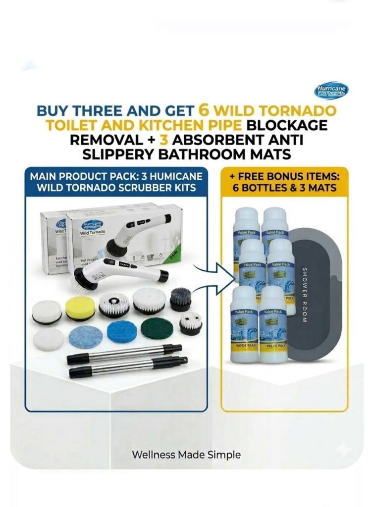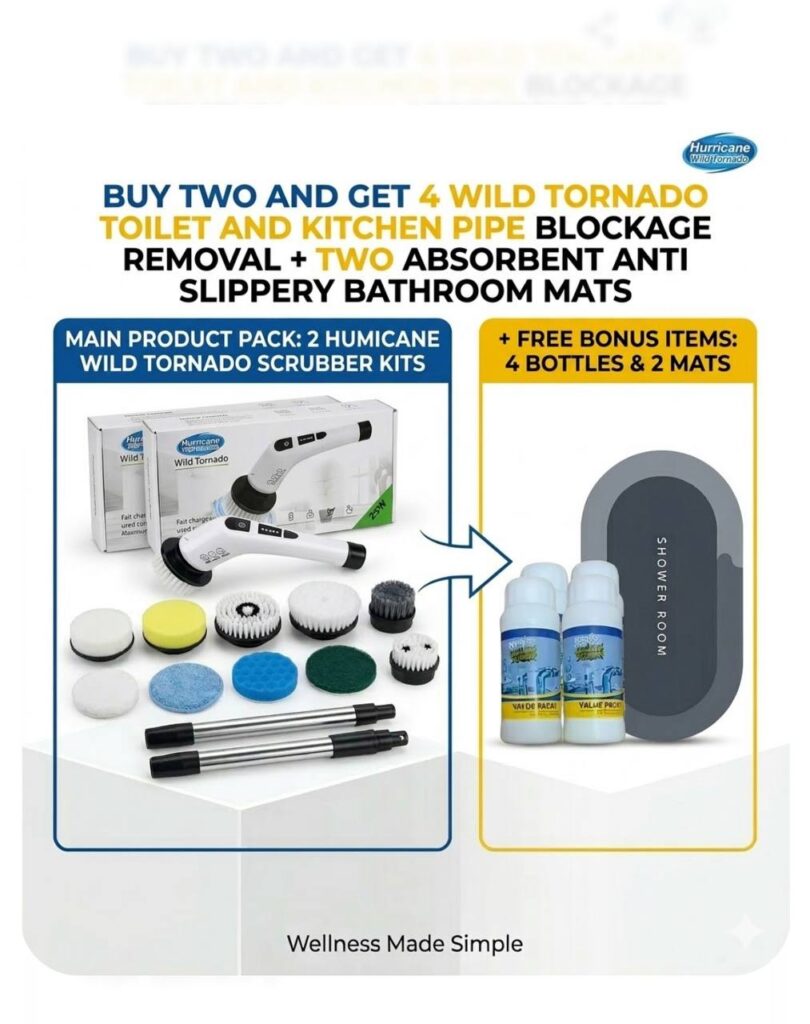 Choose your Package…Limited Bundle: Power Scrubber + FREE Premium Silicon Toilet MAT(N20,000) +FREE premium Wild Tornado TOILET and KITCHEN PIPE BLOCKAGE REMOVAL (worth 10,000) for FREE!!1!”…Only 27 Bundles Left – Order Before Midnight!.